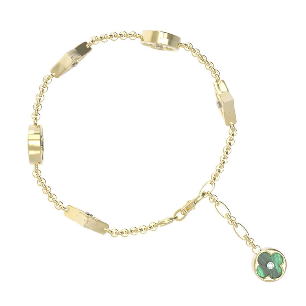 Браслет из лимонного золота c бриллиантами, малахитом и перламутром