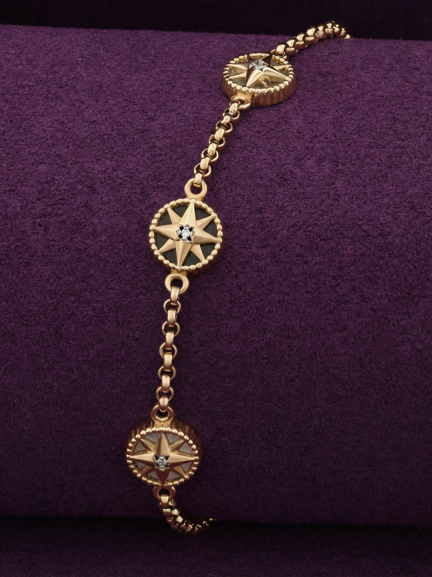 Браслет из золота c бриллиантами, ониксом и перламутром