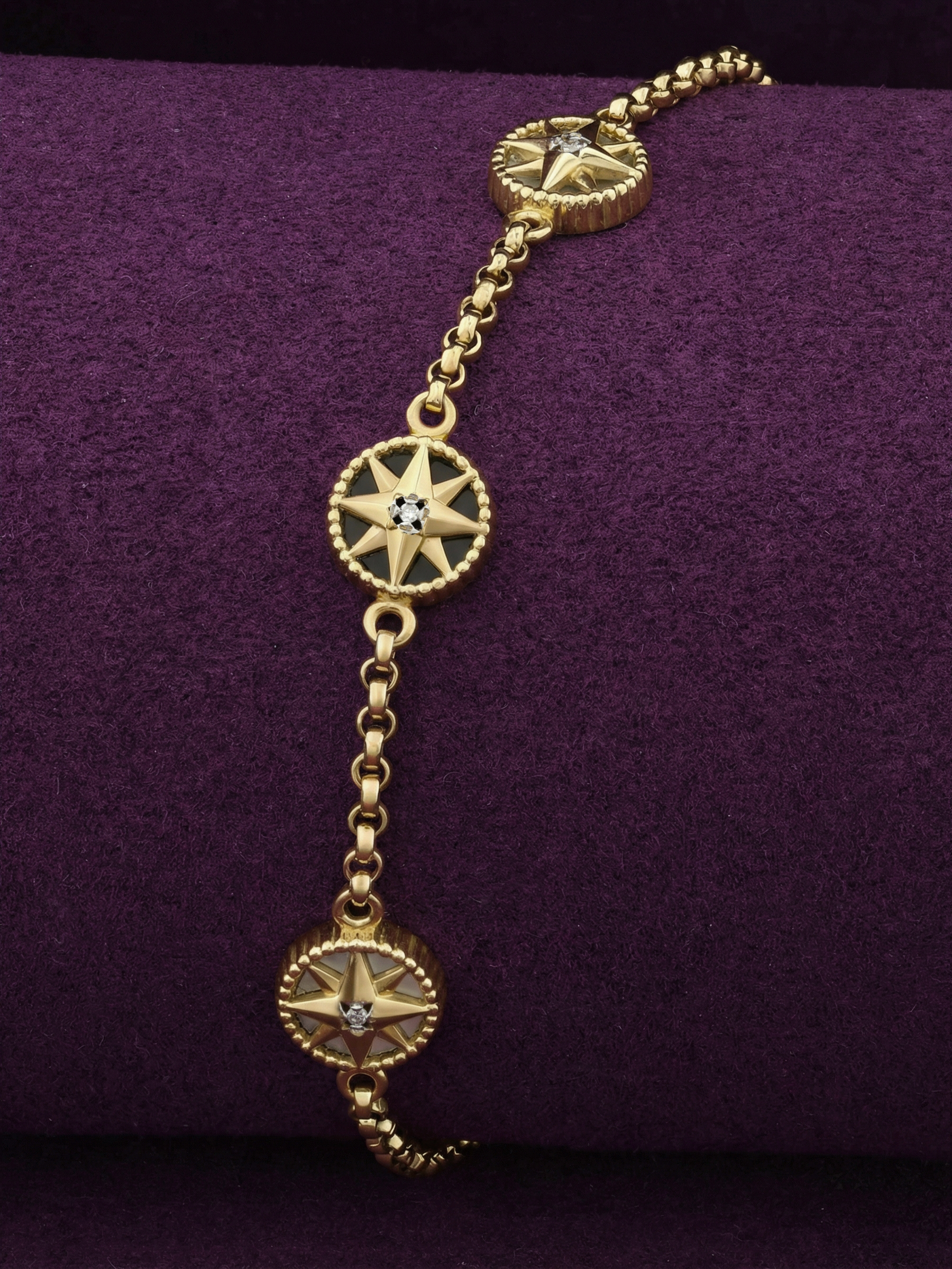 Браслет из лимонного золота c бриллиантами, ониксом и перламутром