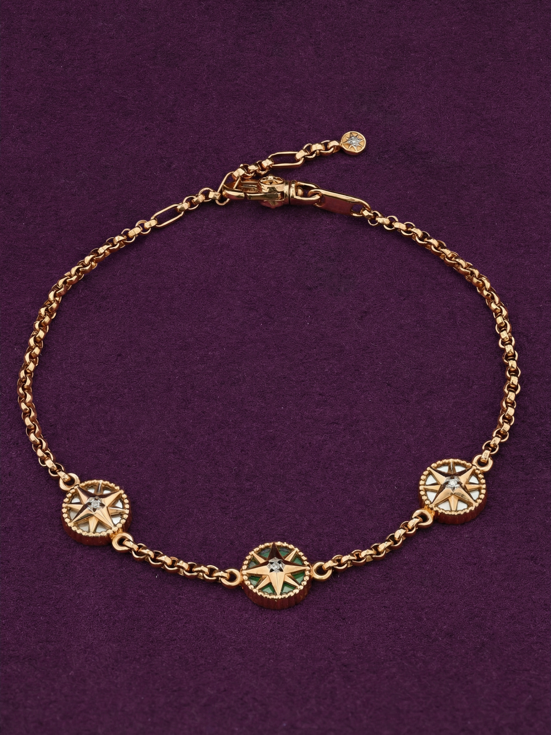 Браслет из золота c бриллиантами, малахитом и перламутром