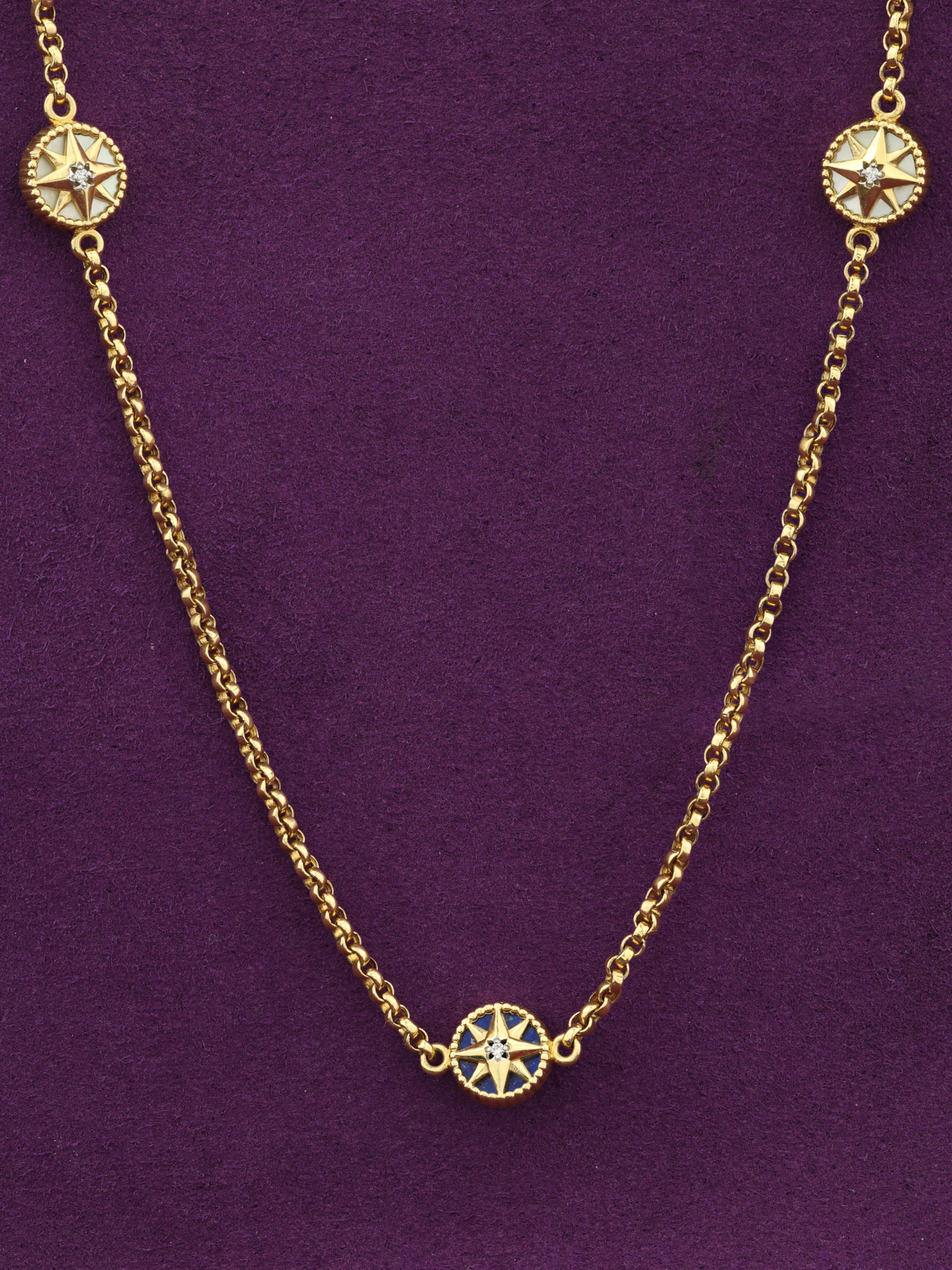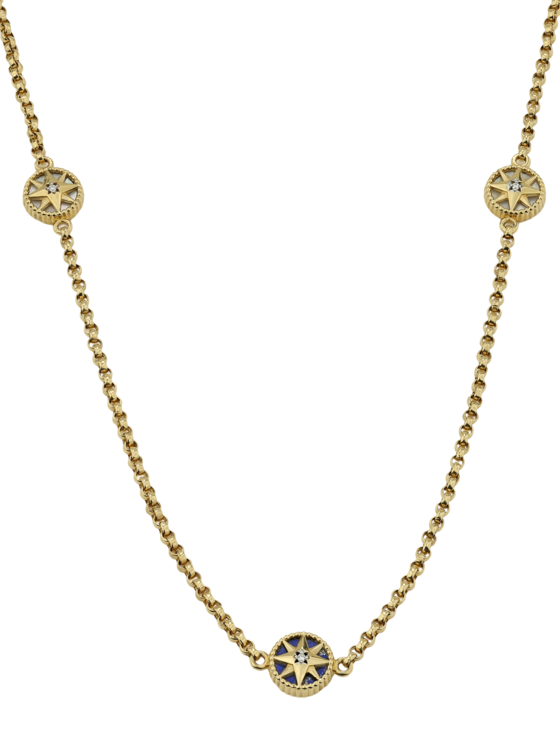 Колье из лимонного золота c бриллиантами, лазуритом и перламутром