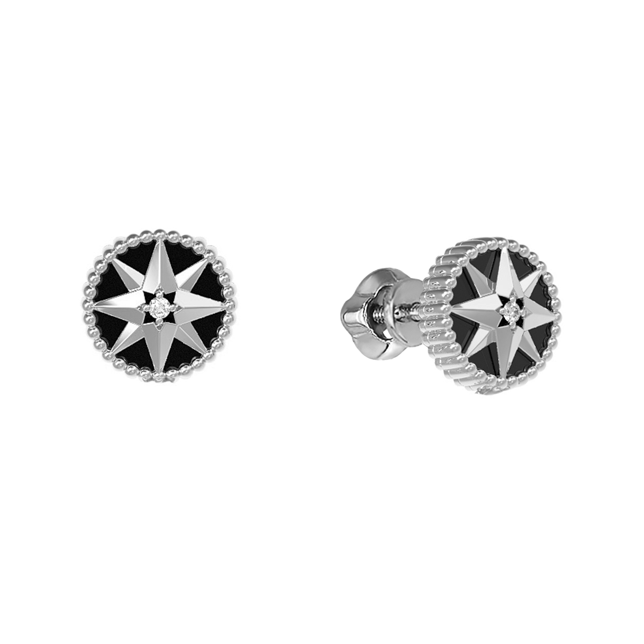 Серьги из белого золота c бриллиантами и ониксом