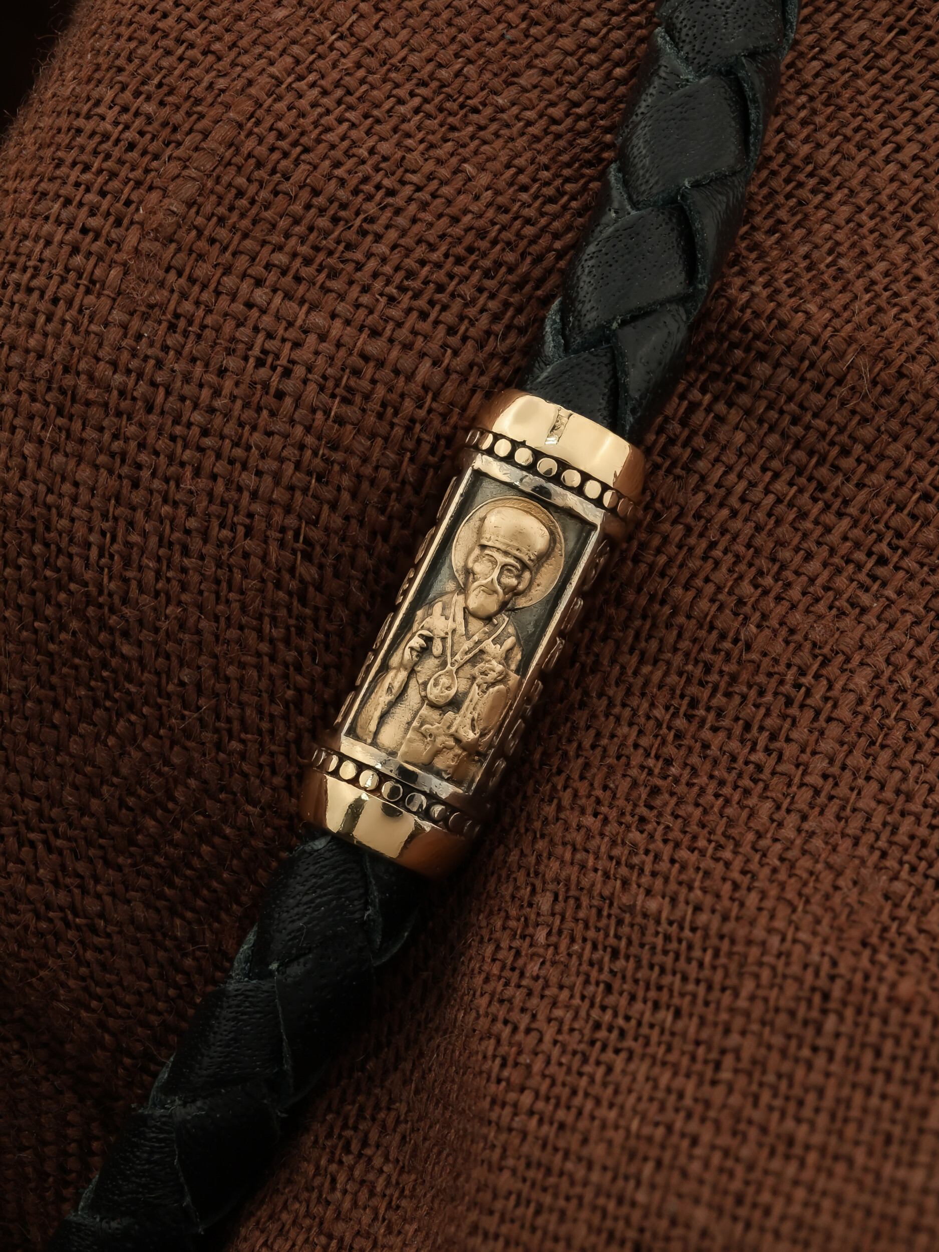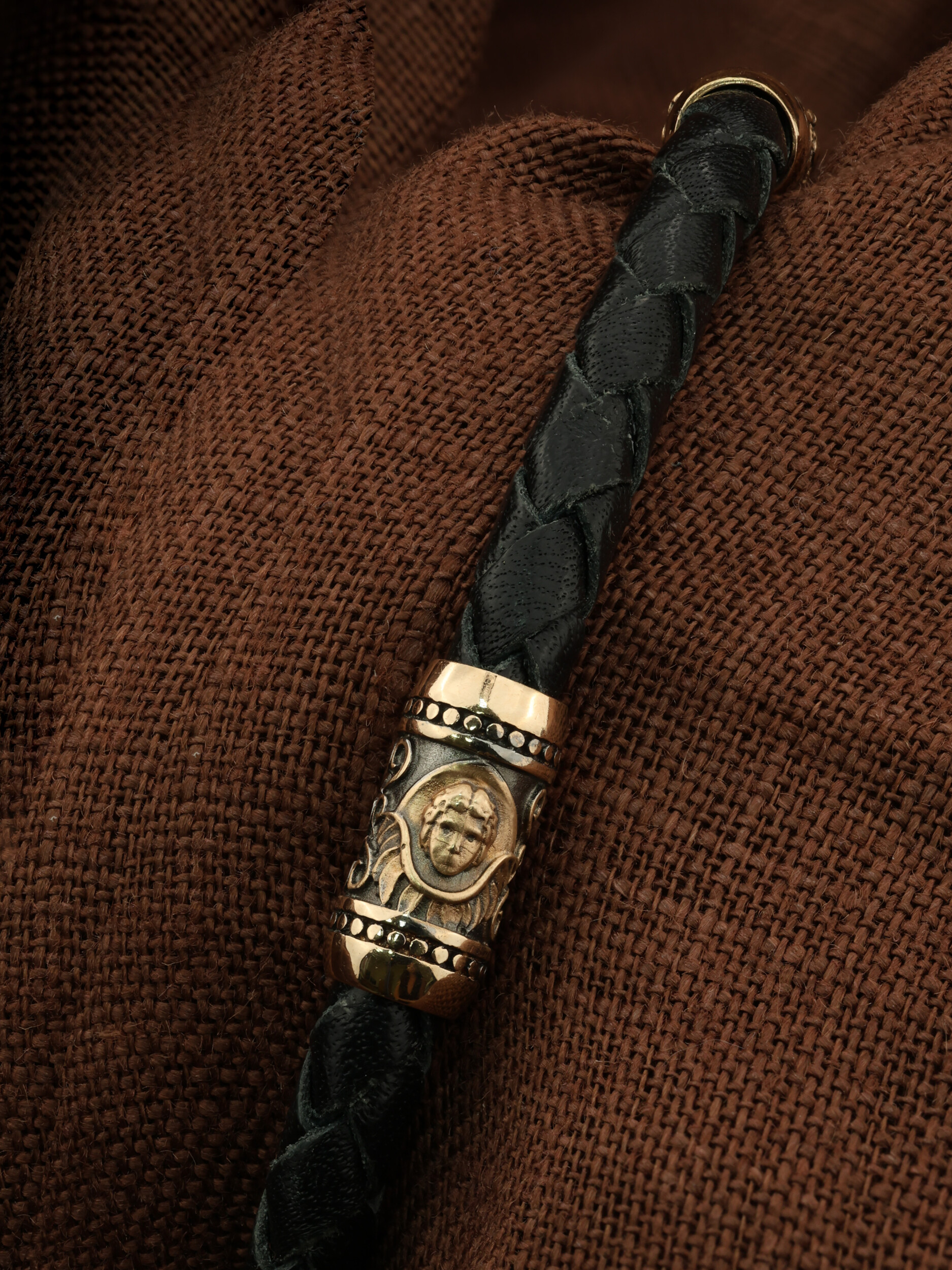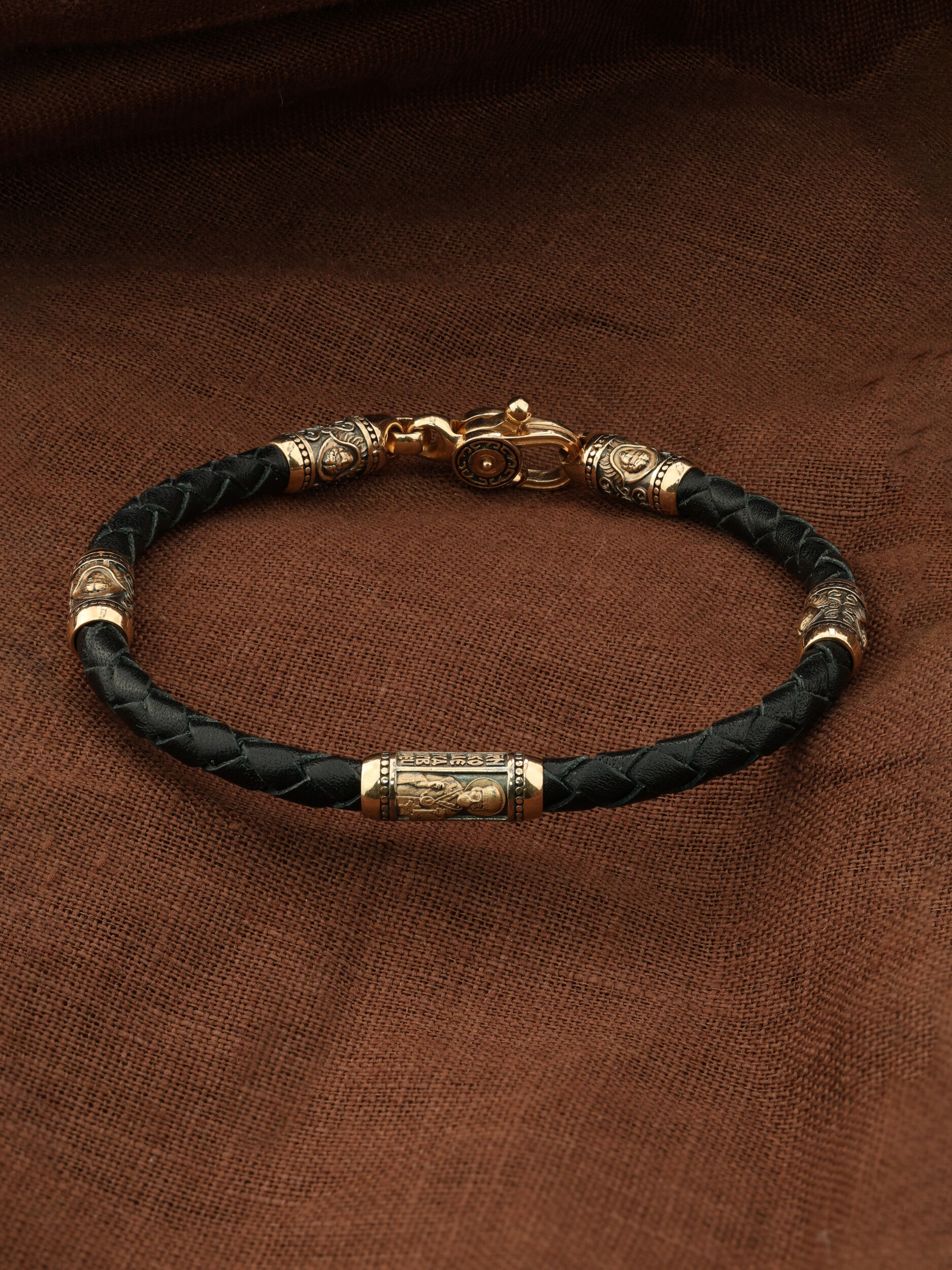 Браслет из золота c кожаным шнурком