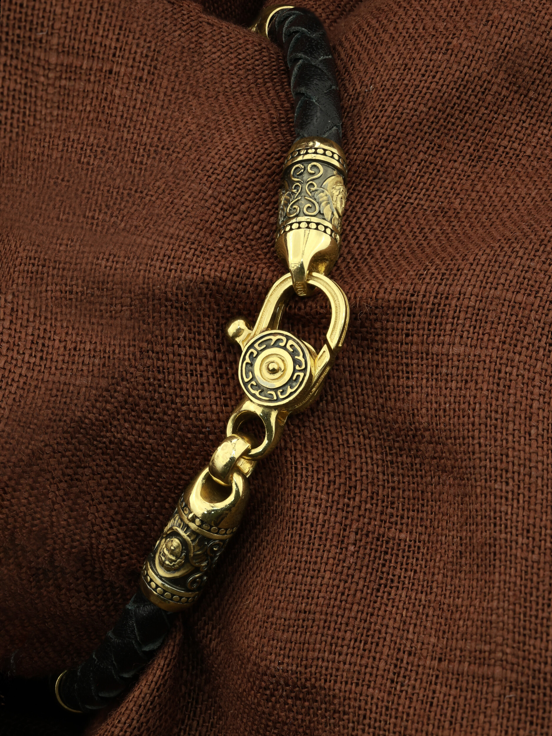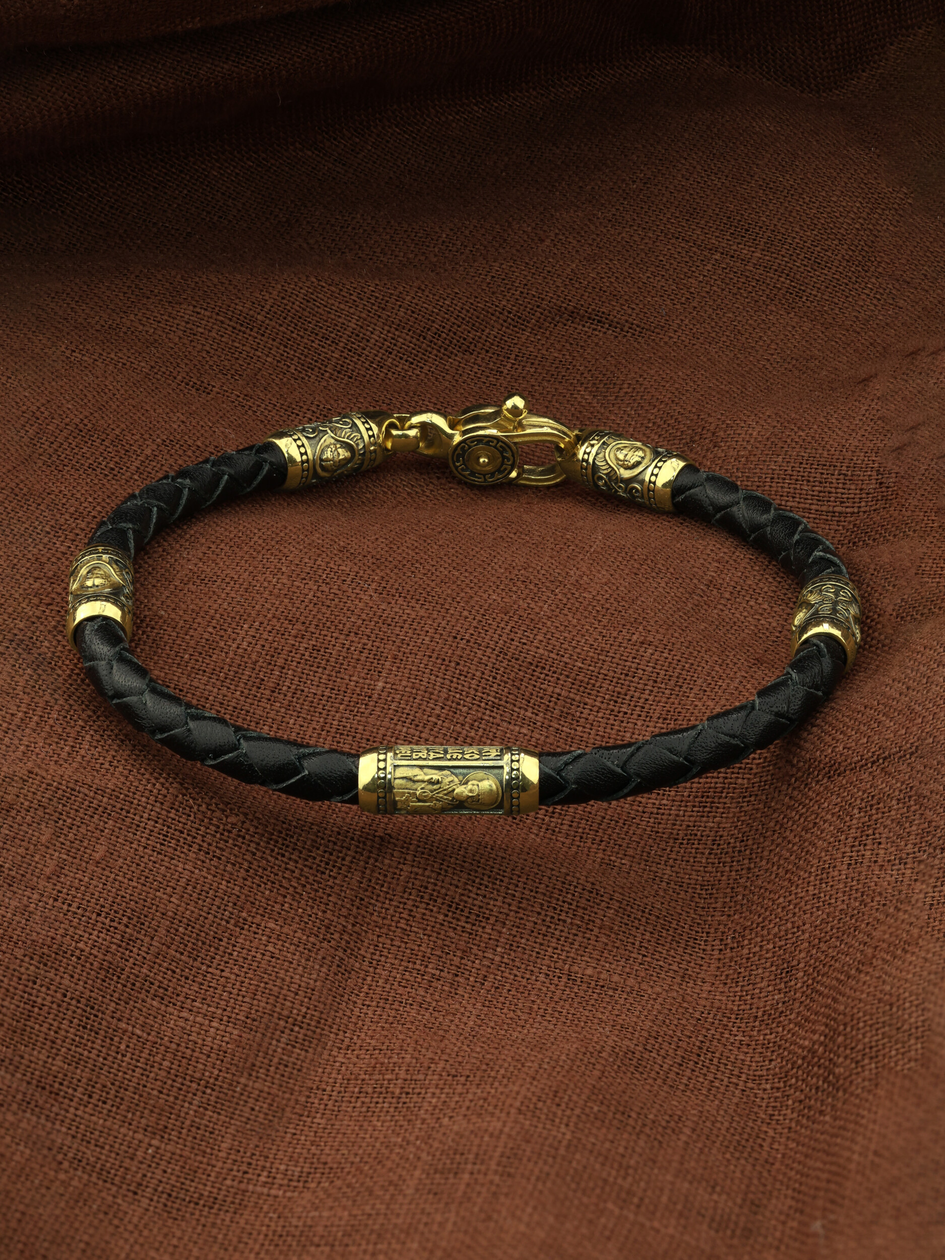 Браслет из лимонного золота c кожаным шнурком