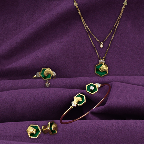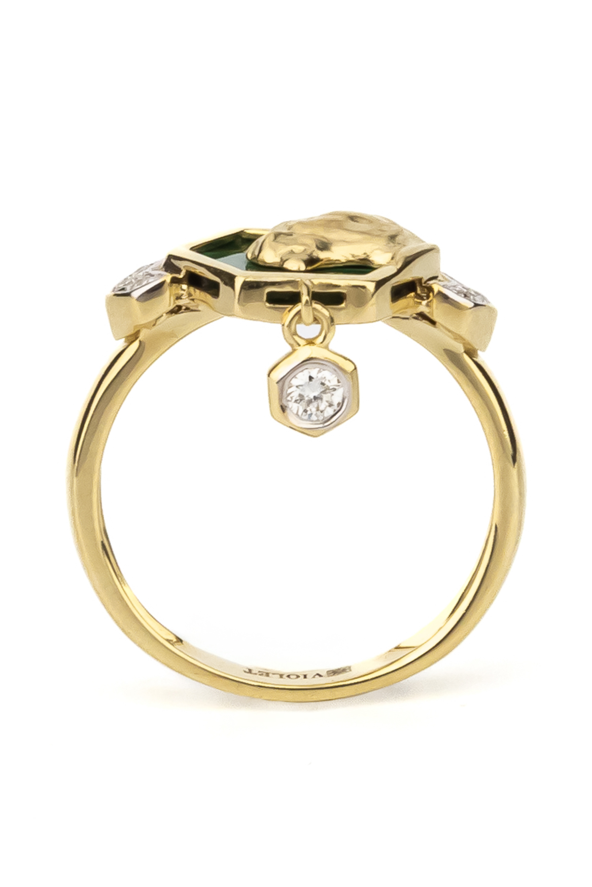 Кольцо из лимонного золота c бриллиантами и малахитом