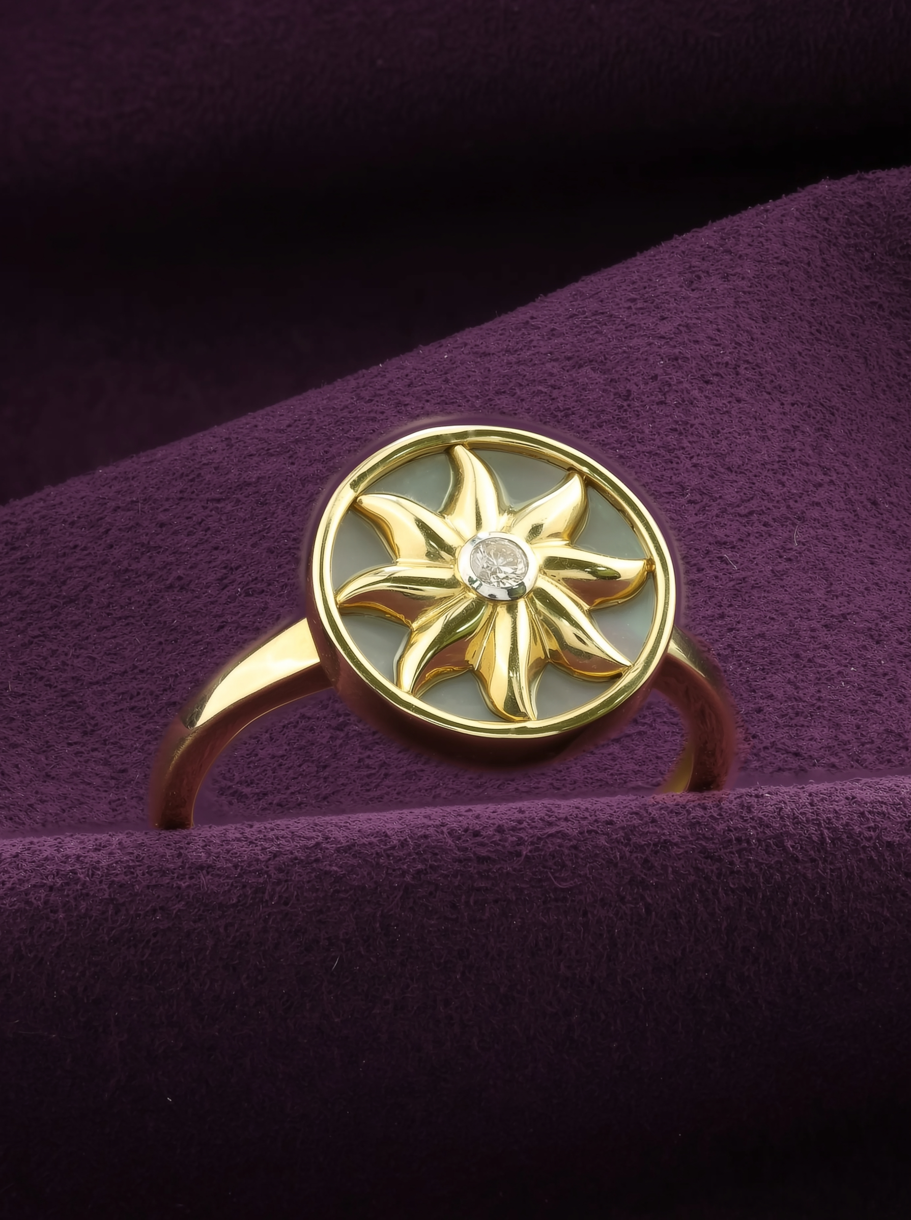 Кольцо из лимонного золота c бриллиантами и перламутром