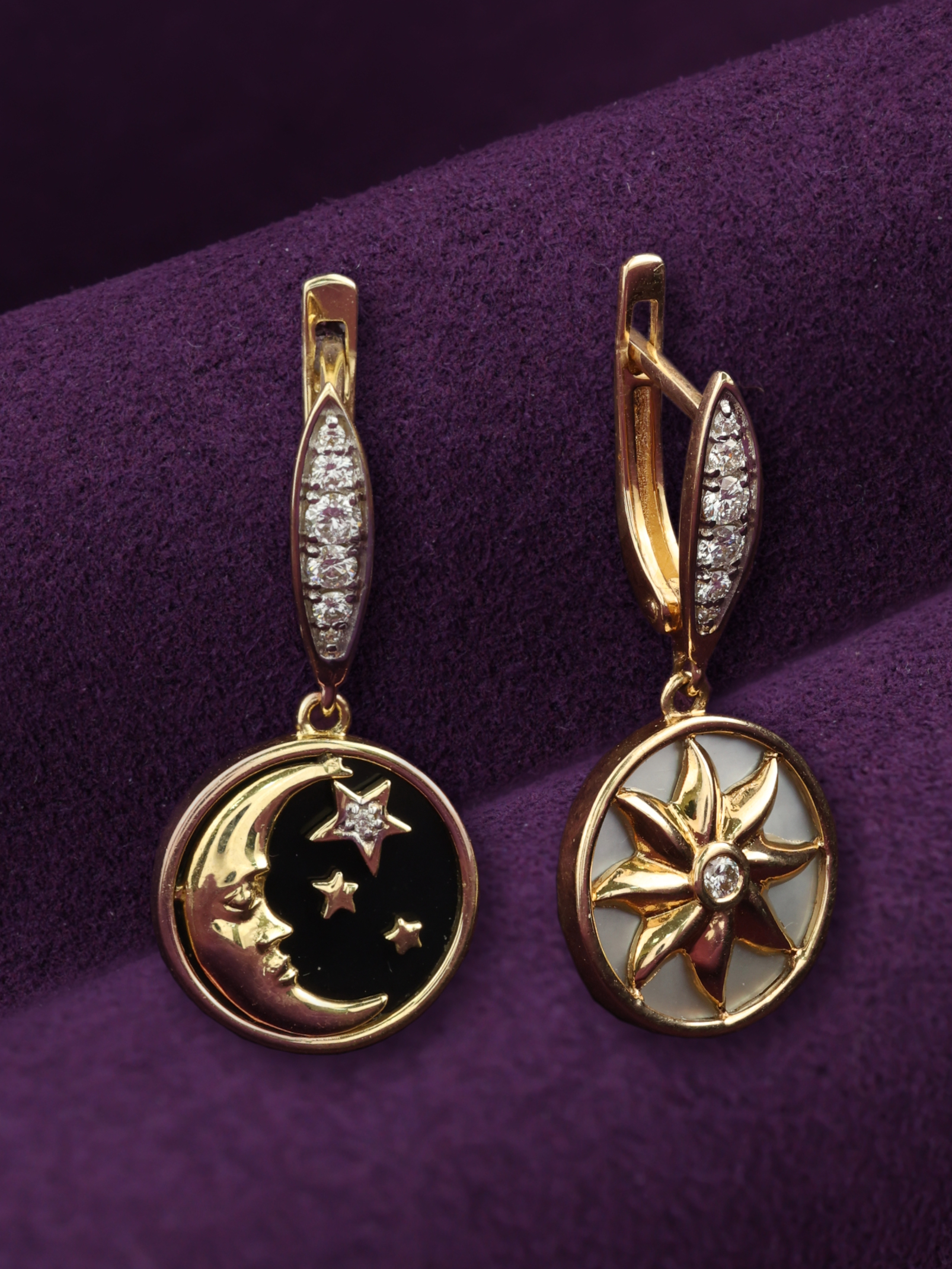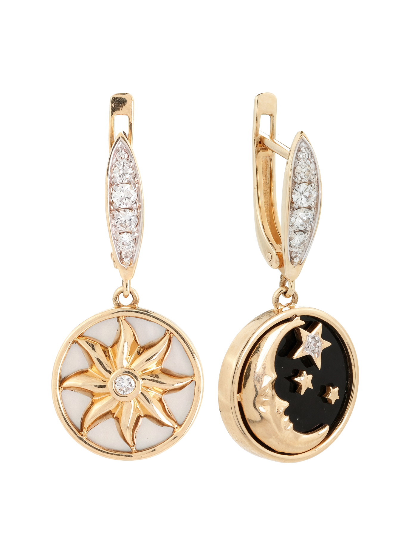 Серьги из золота c бриллиантами, ониксом и перламутром