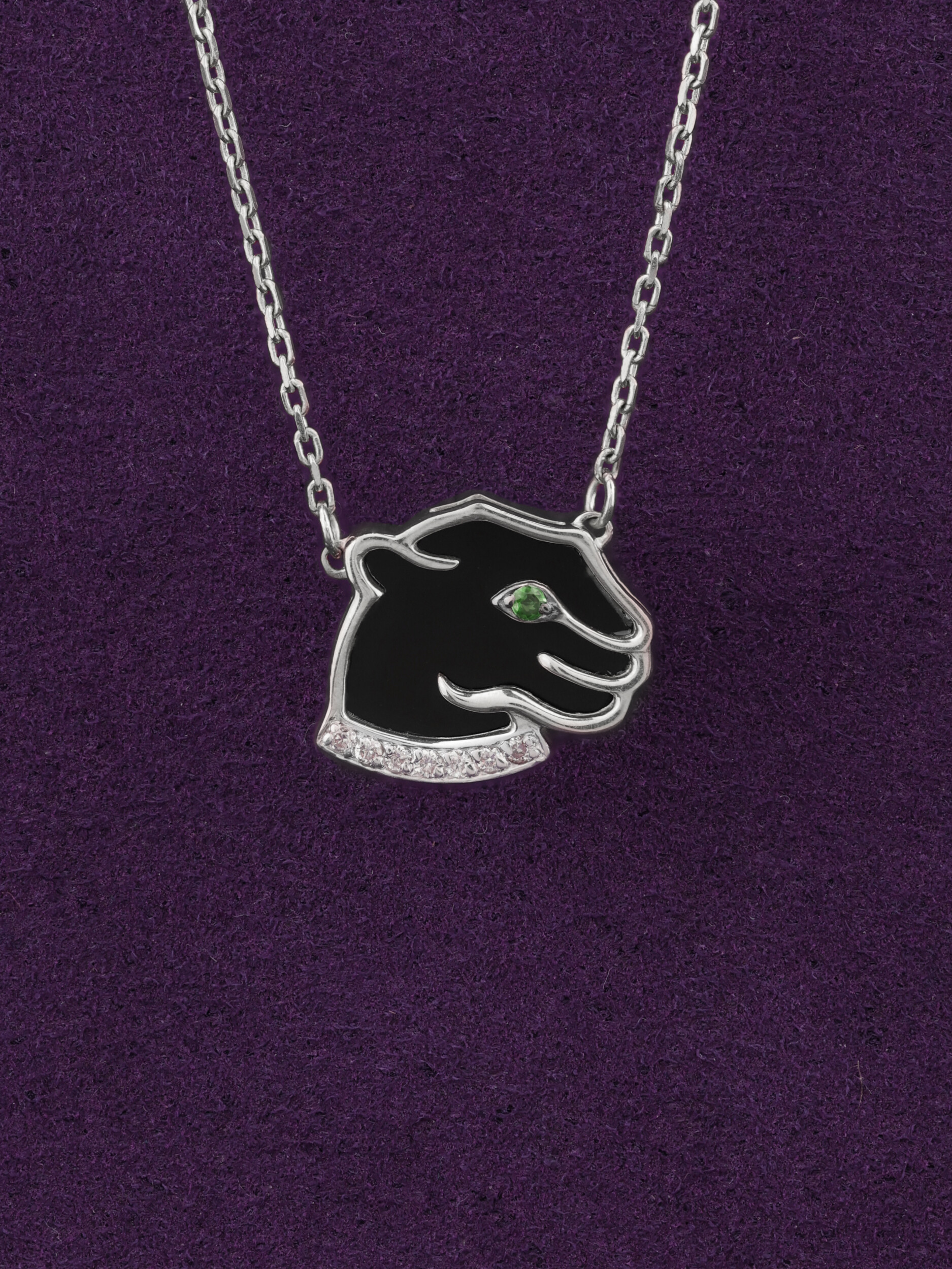 Колье из белого золота c бриллиантами, изумрудом и ониксом