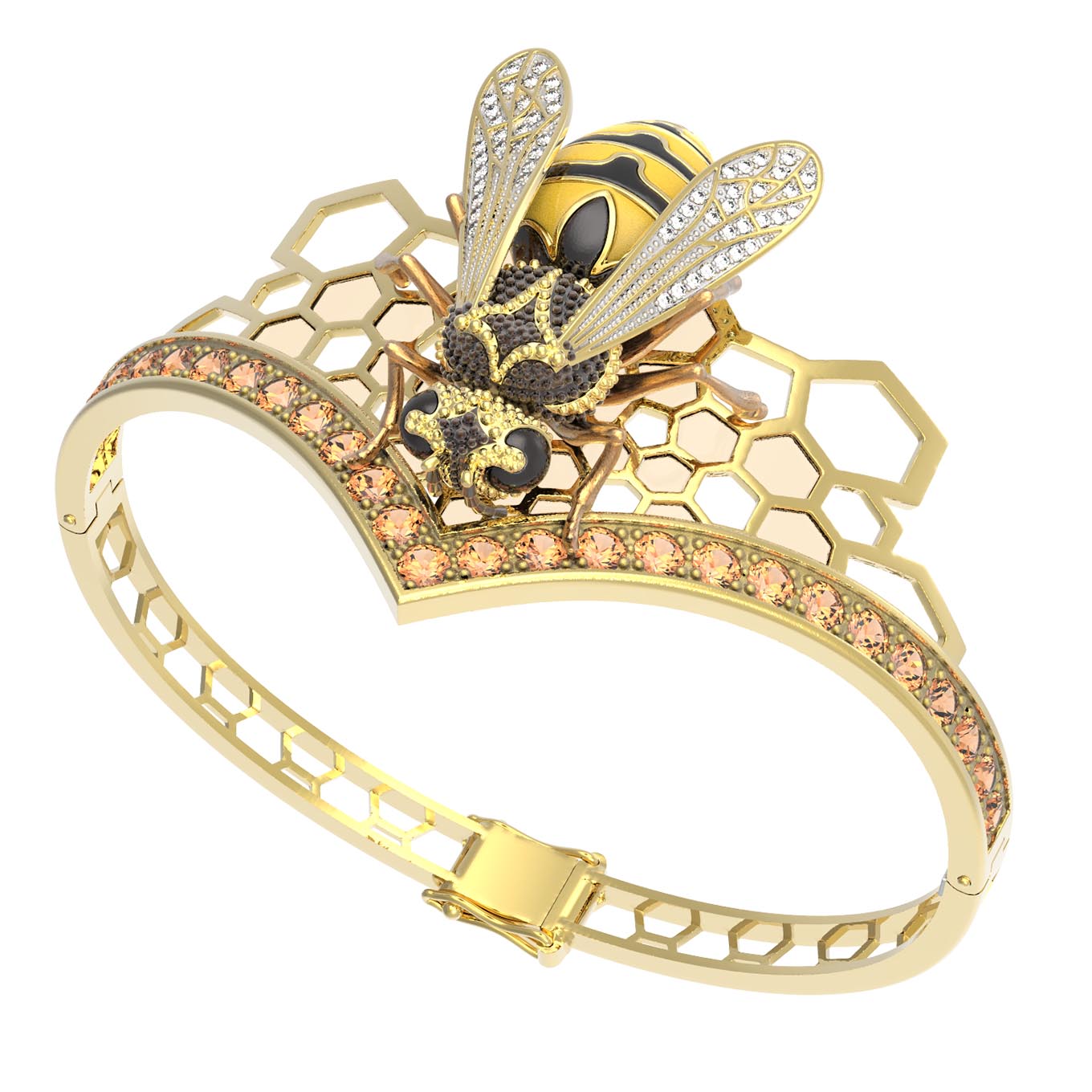 Браслет из лимонного золота c эмаль, фианитом, цитрином и эмалью