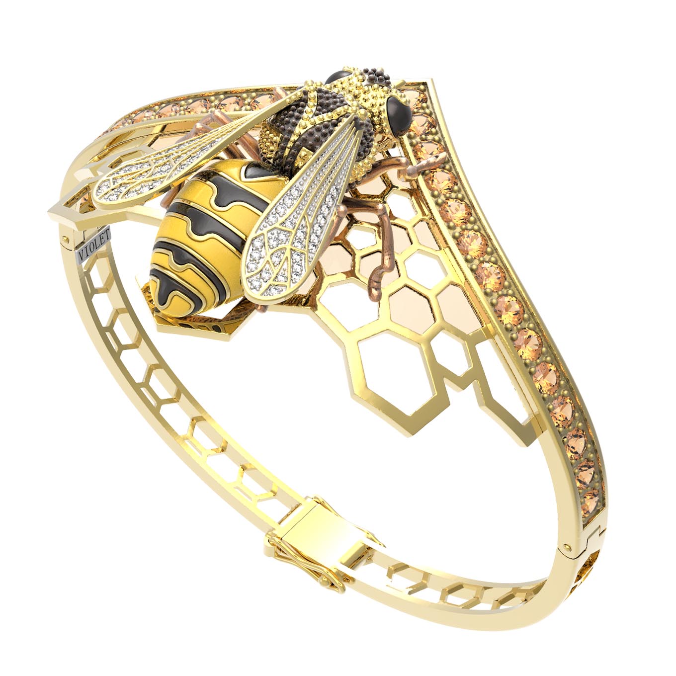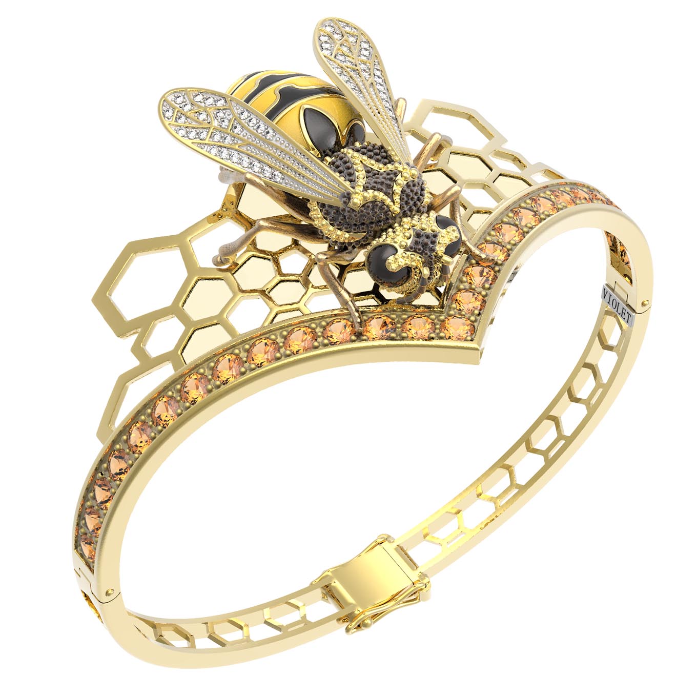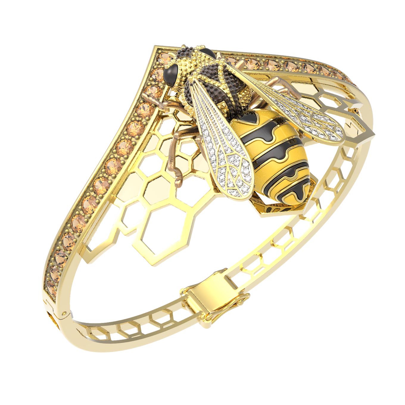 Браслет из лимонного золота c эмаль , фианитом, цитрином и эмалью
