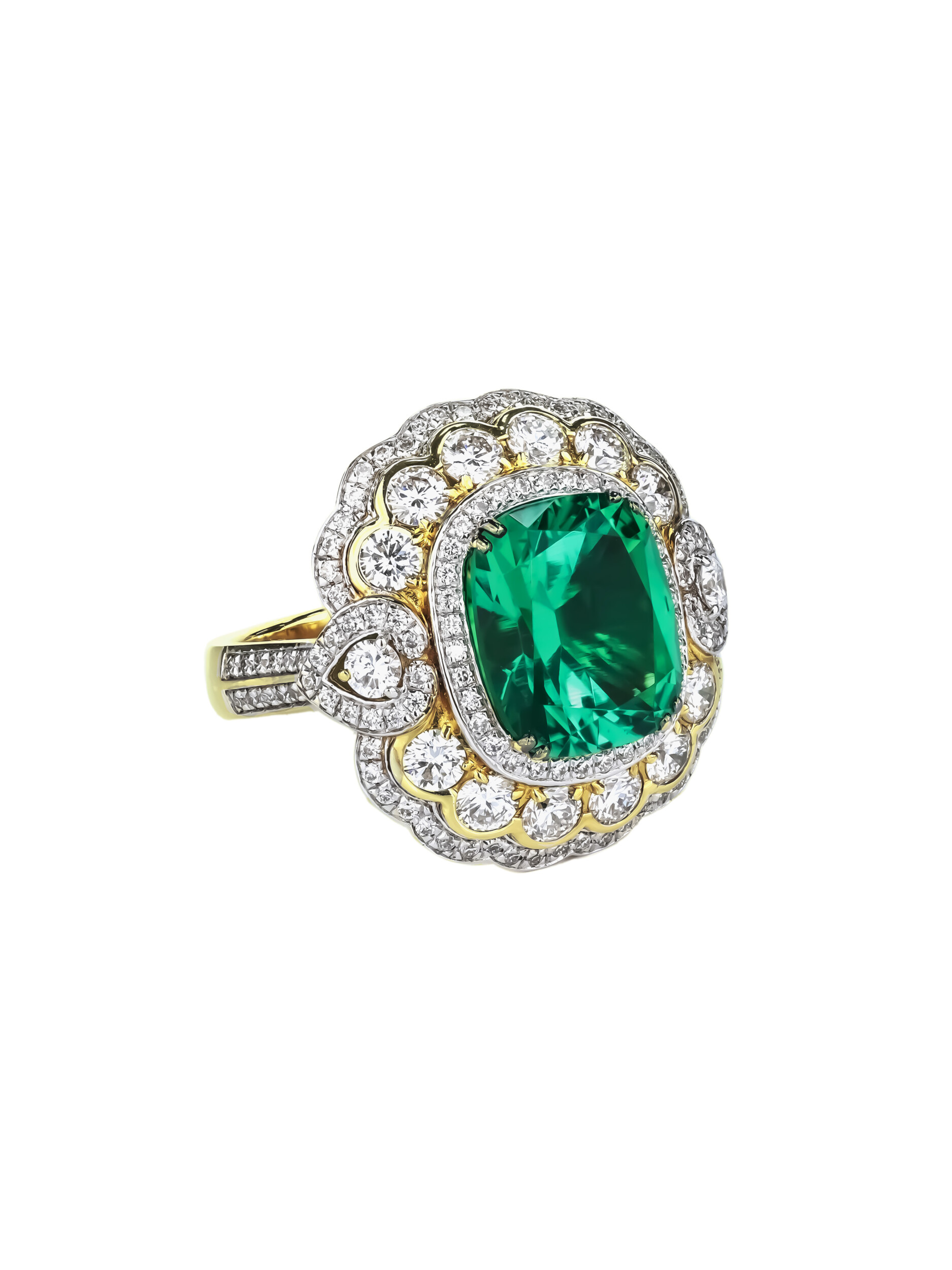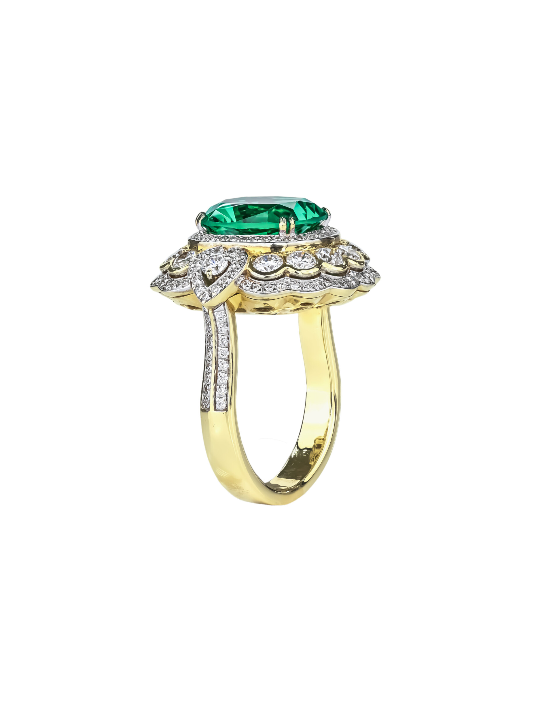 Кольцо из лимонного золота c бриллиантами и изумрудом
