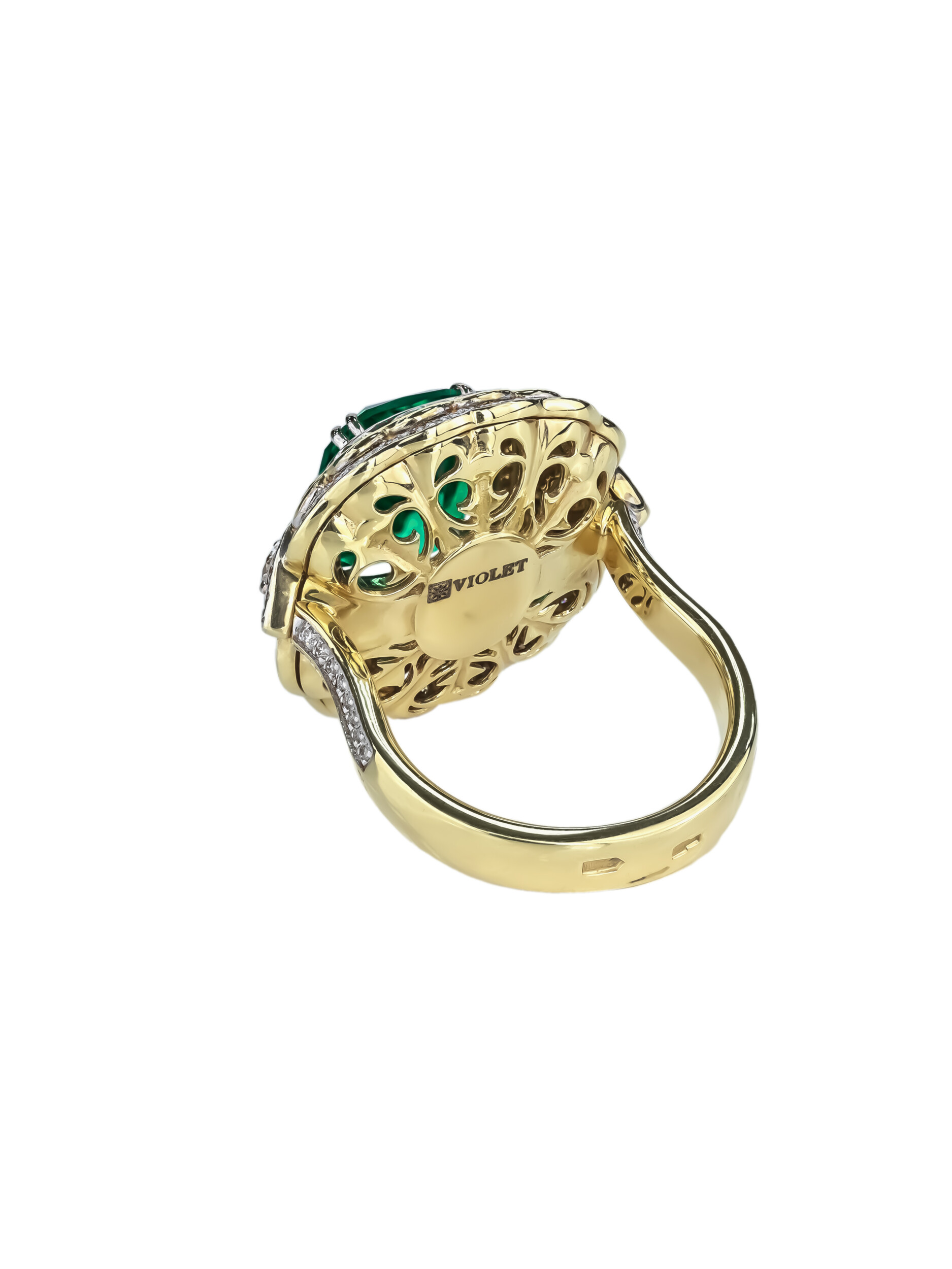 Кольцо из лимонного золота c бриллиантами и изумрудом