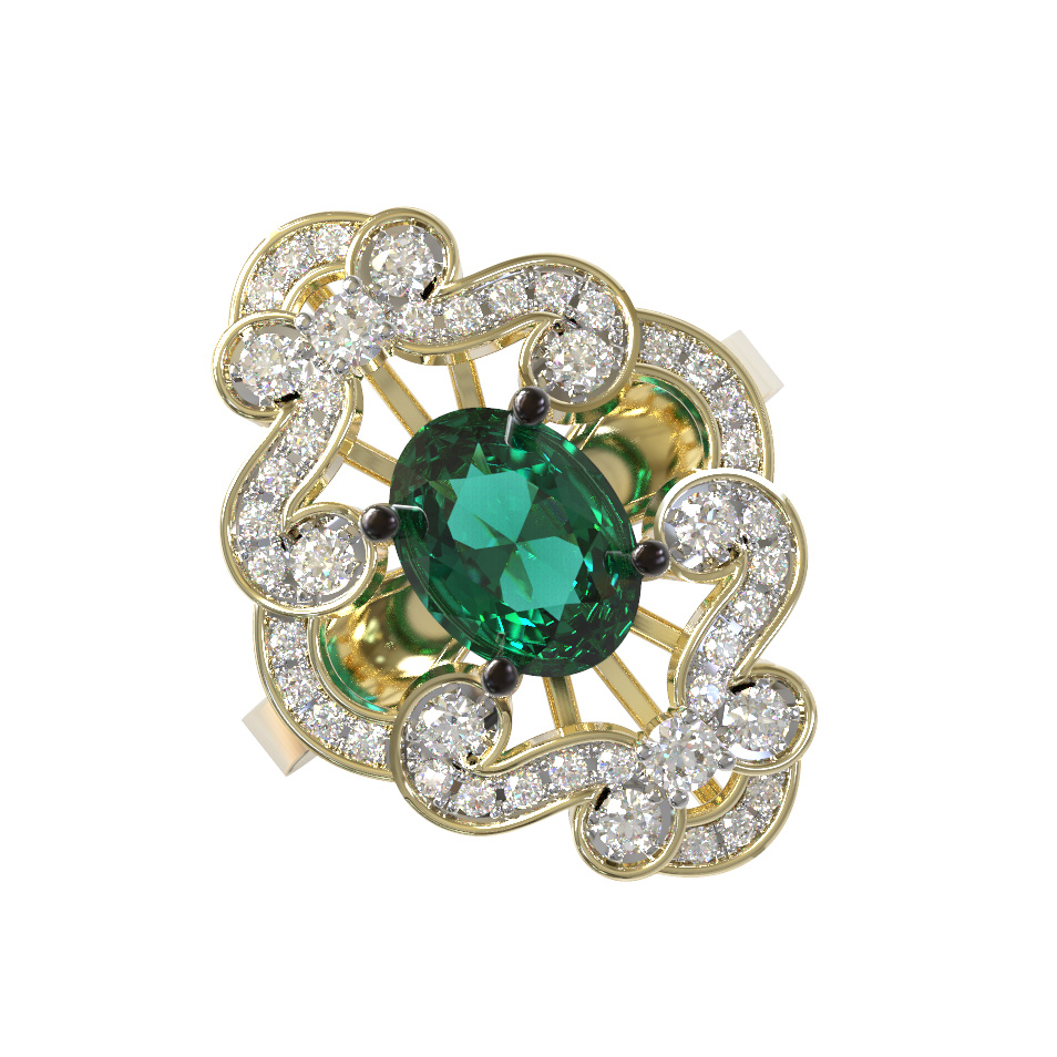 Кольцо из лимонного золота c бриллиантами и изумрудом