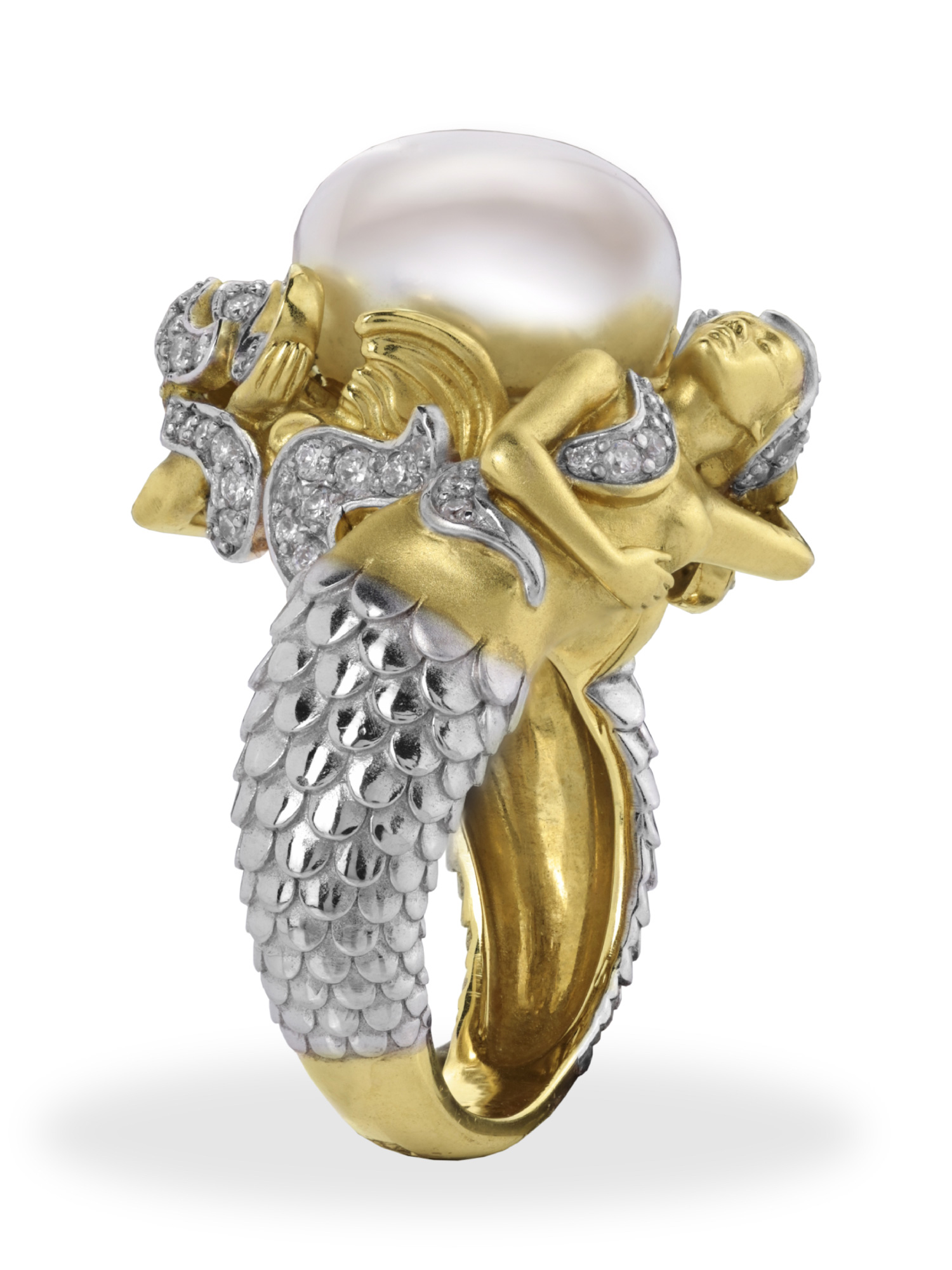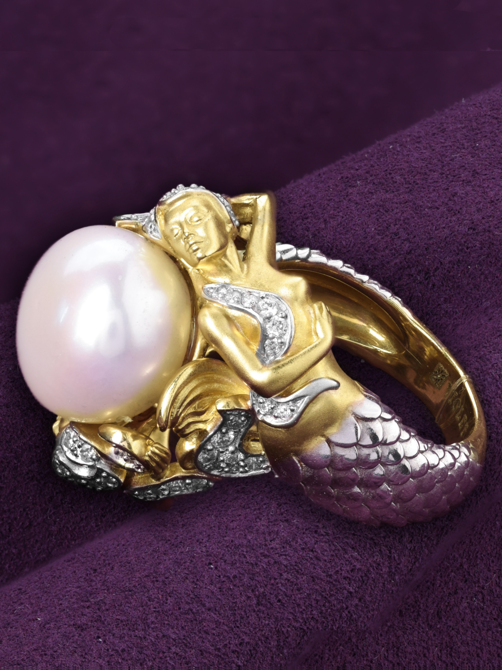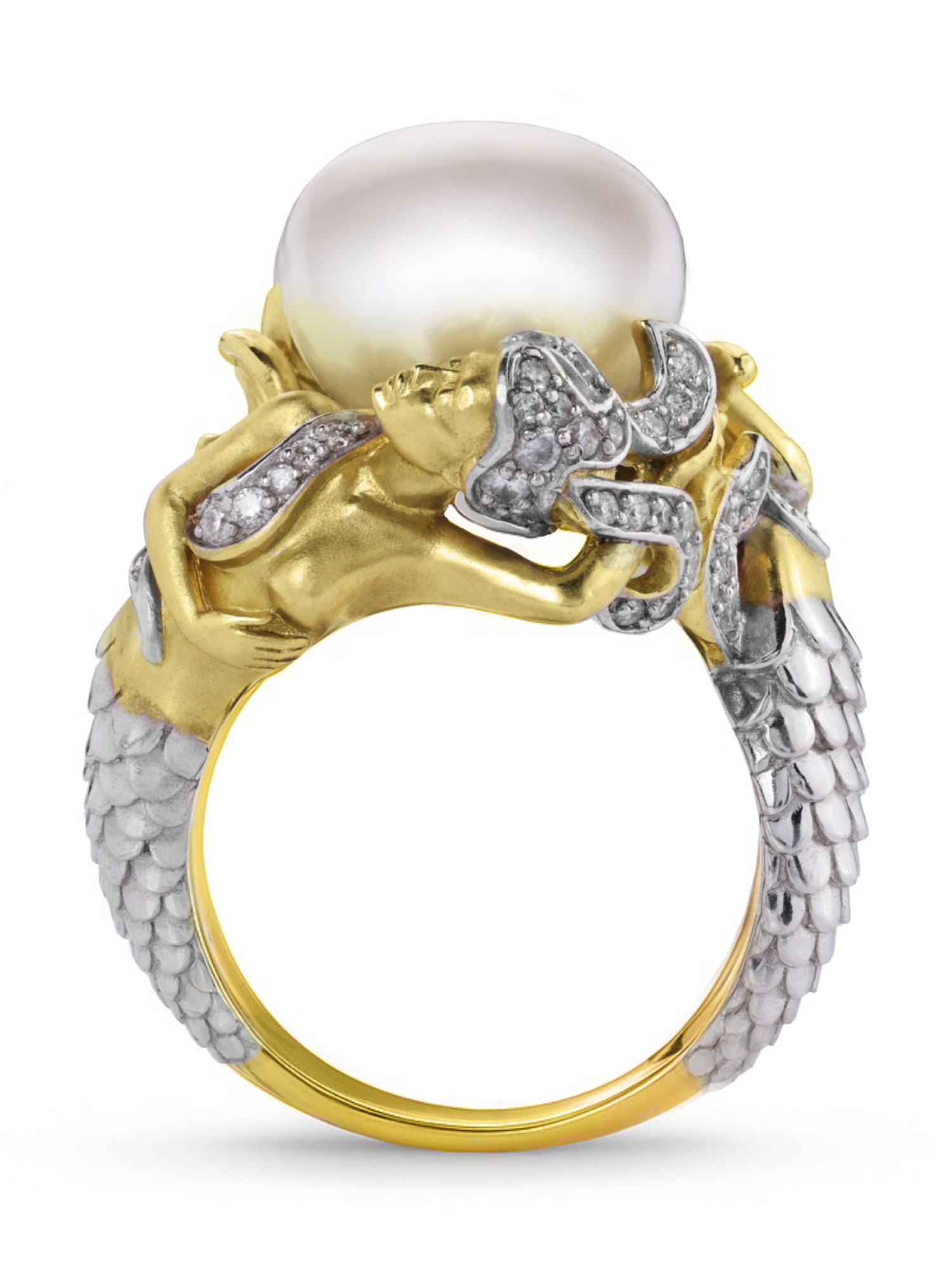 Кольцо из лимонного золота c бриллиантами и жемчугом