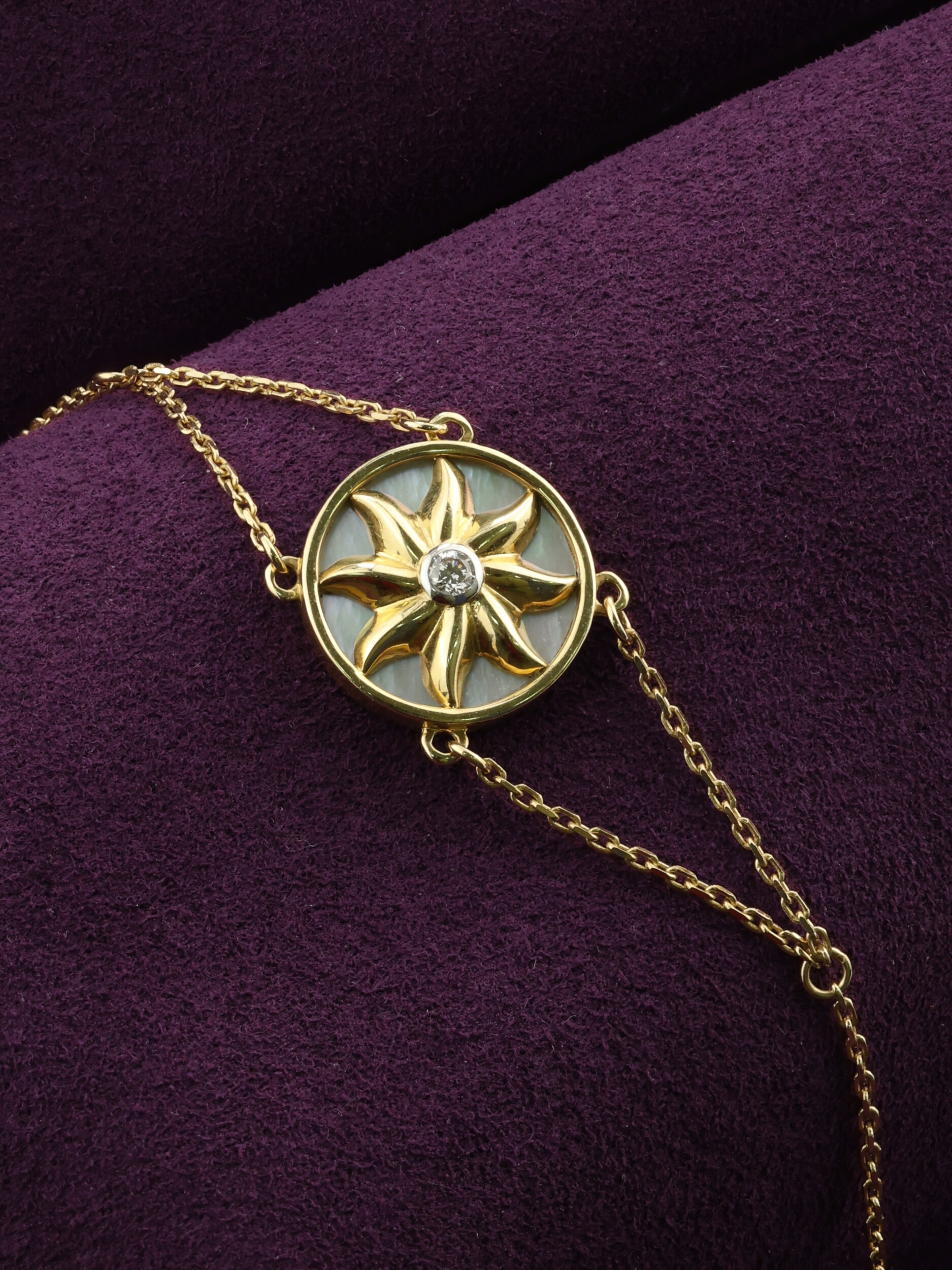 Браслет из лимонного золота c бриллиантами и перламутром