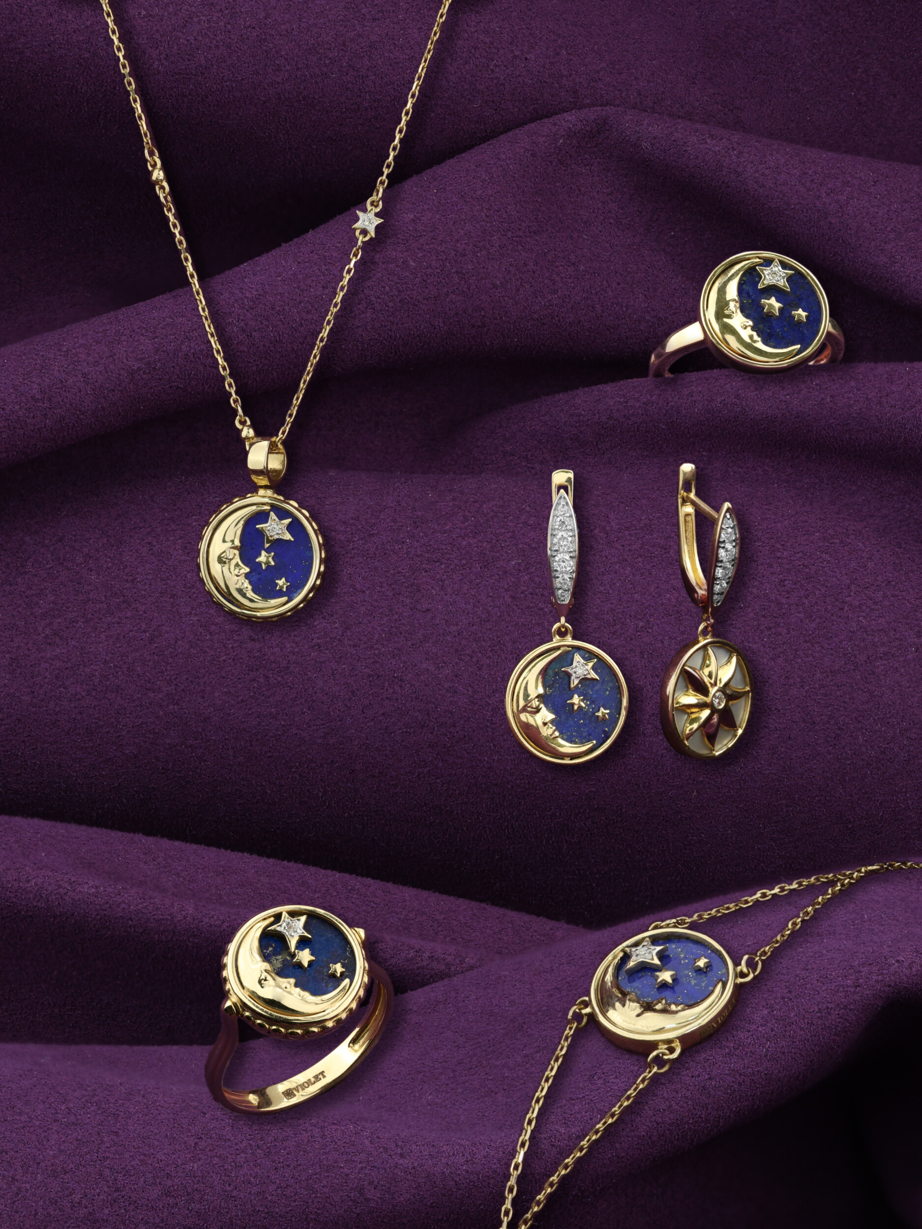 Колье из лимонного золота c бриллиантами, лазуритом и перламутром