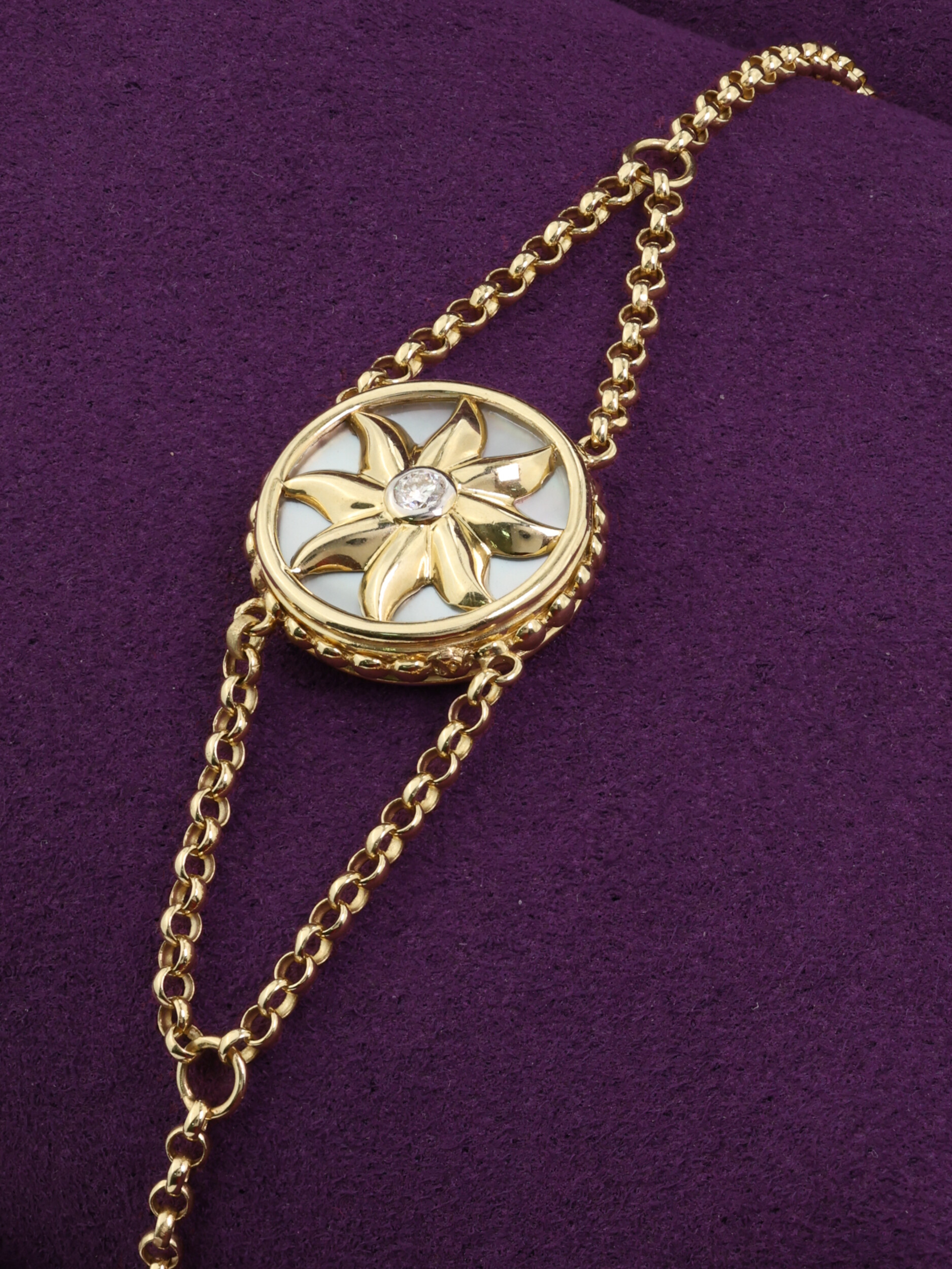 Браслет из лимонного золота c бриллиантами, ониксом и перламутром