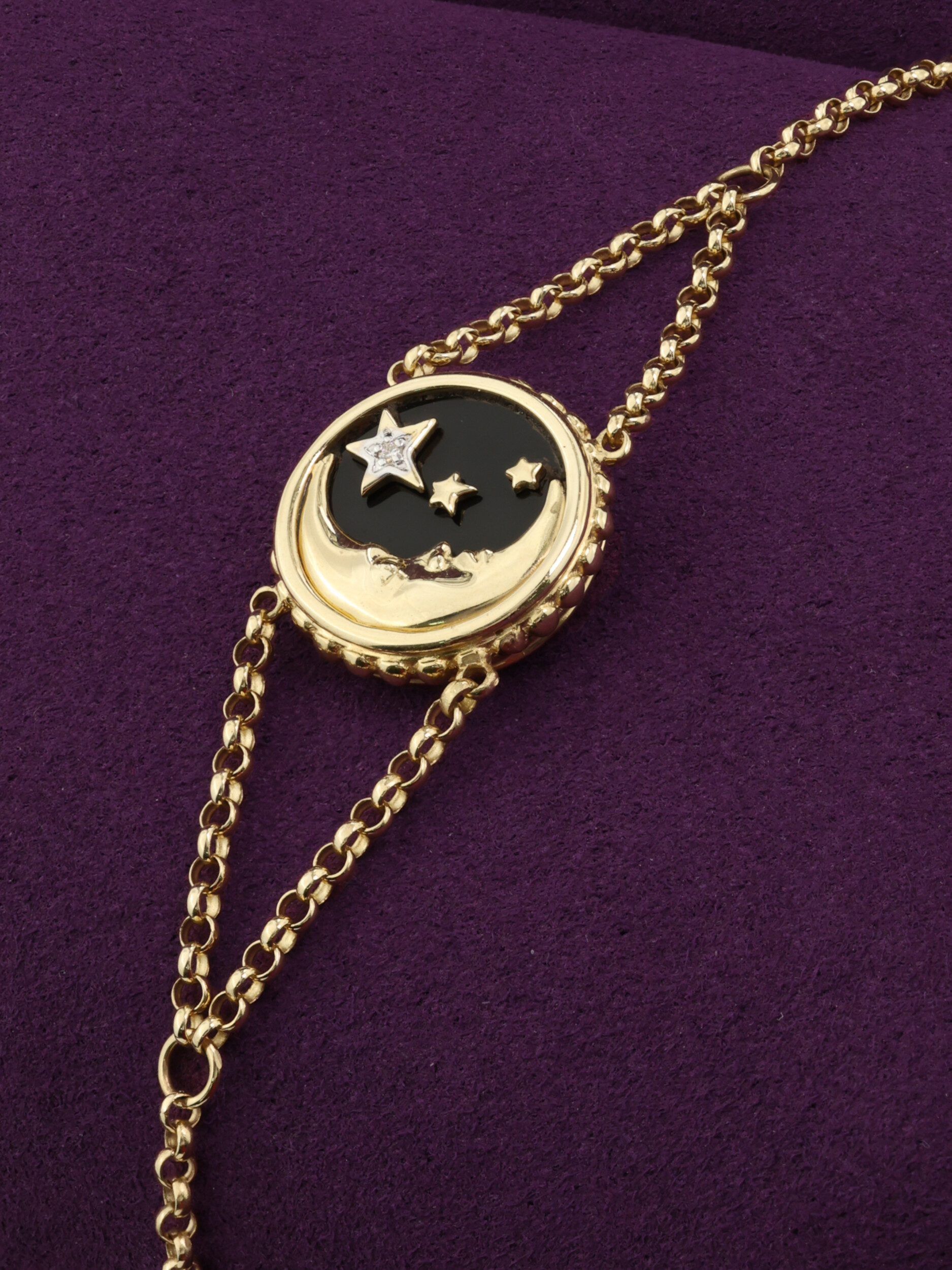 Браслет из лимонного золота c бриллиантами, ониксом и перламутром
