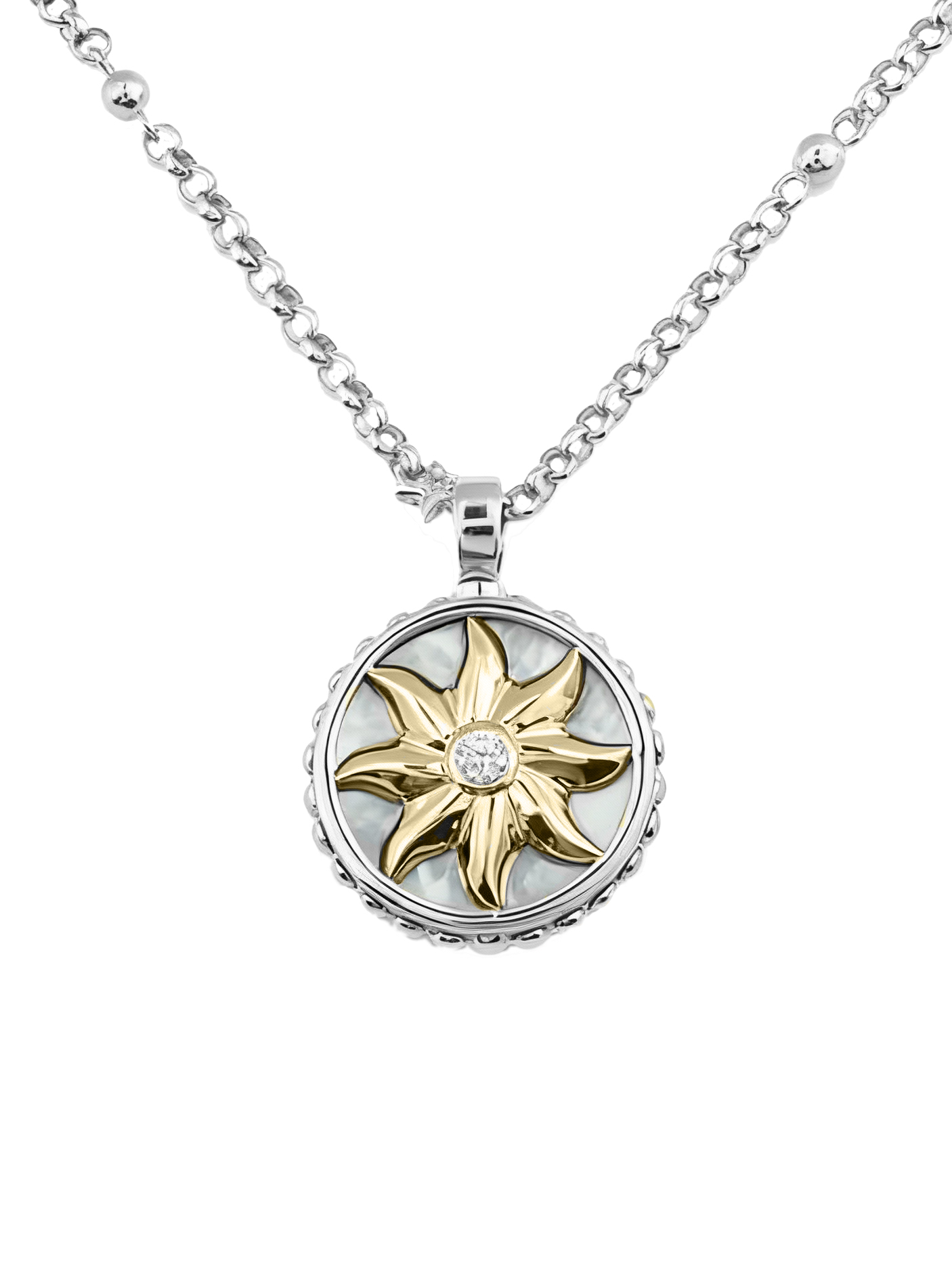 Колье из белого золота c бриллиантами, ониксом и перламутром
