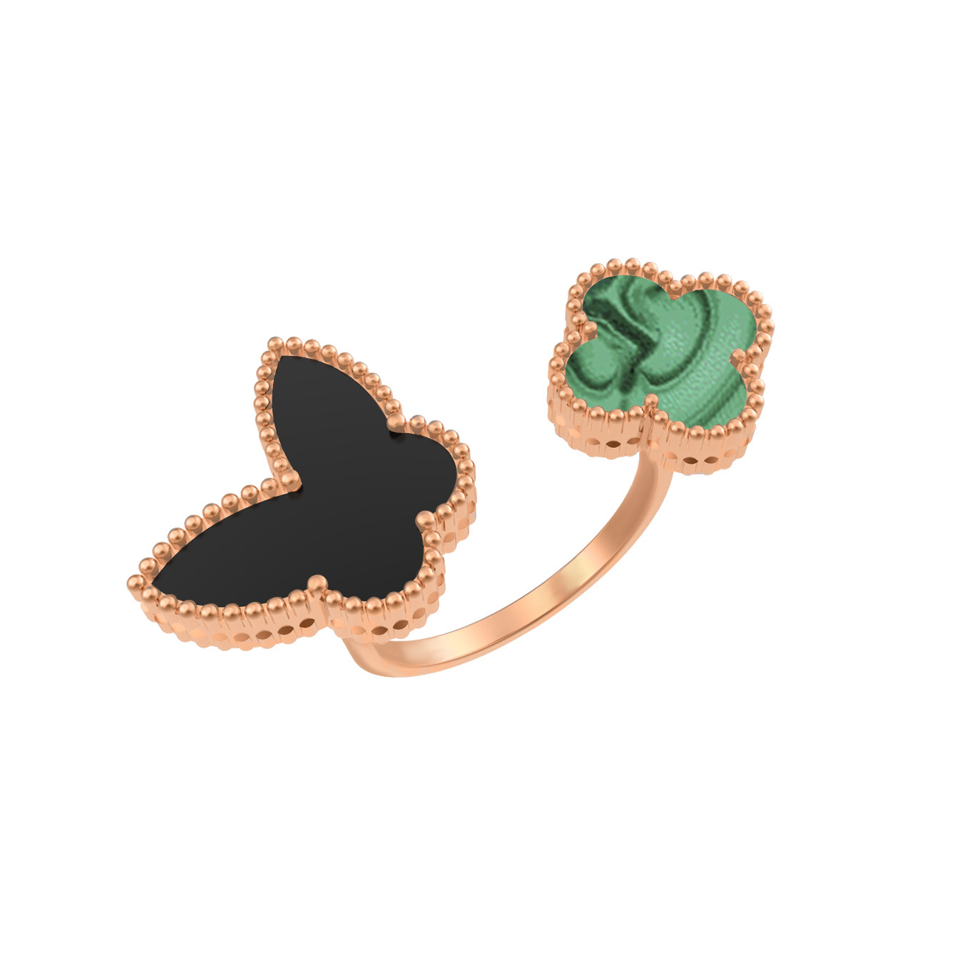 Кольцо из золота c ониксом и малахитом